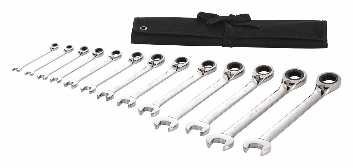 WESTWARD 54DG32 Clé combinée St, acier, en ligne polissage complet, décalé 54DG32